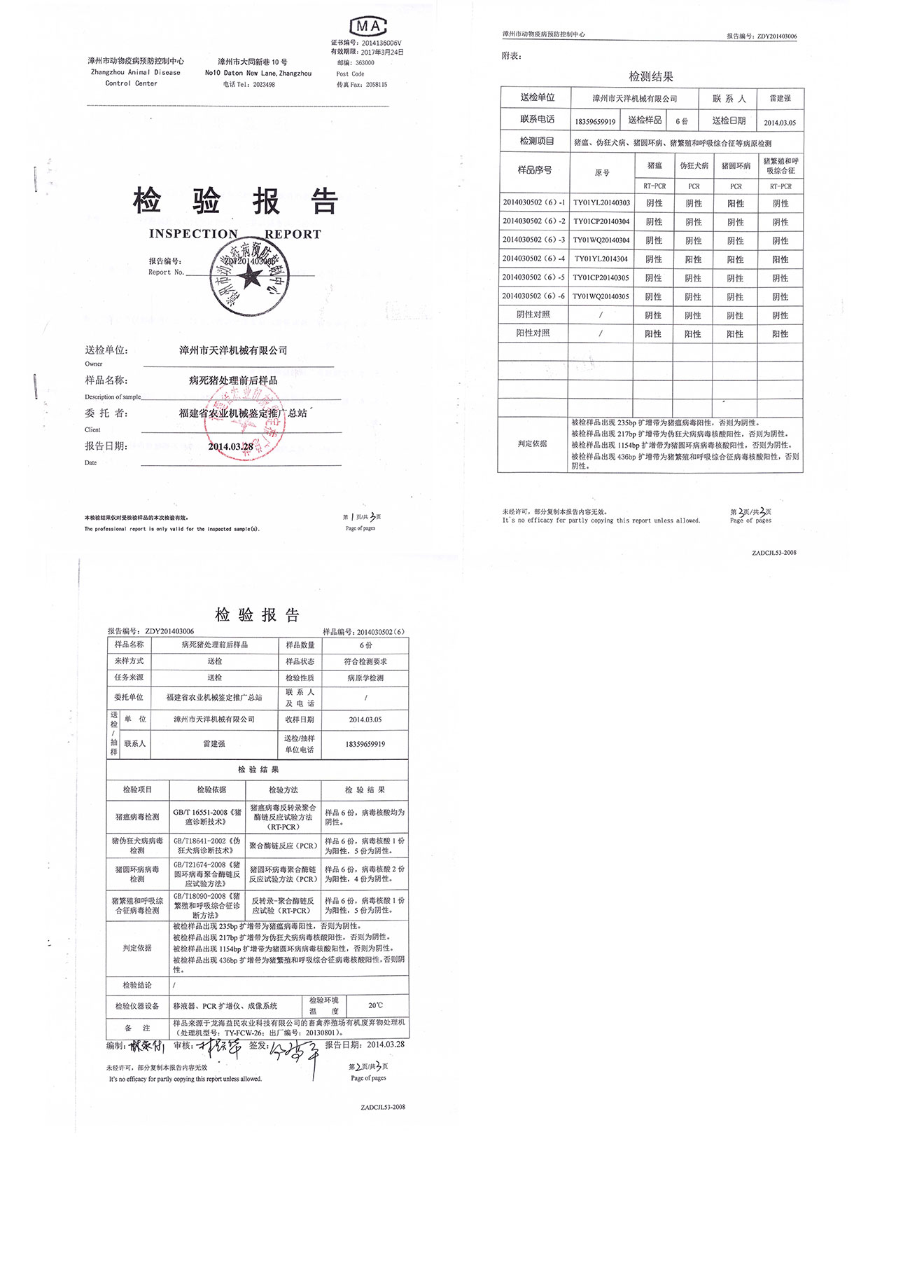漳州市動物疫病預(yù)防控制中心檢驗報告--病死豬1